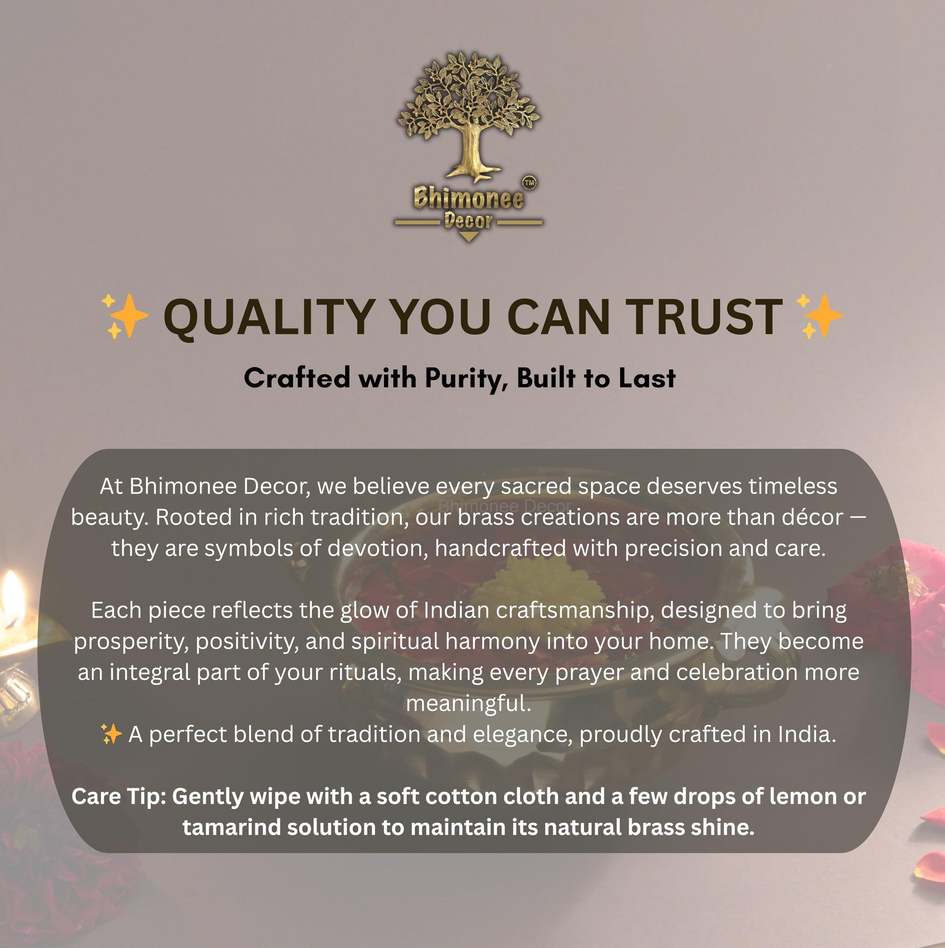 “The brass floral pooja plate has intricate carvings and shines after polishing”