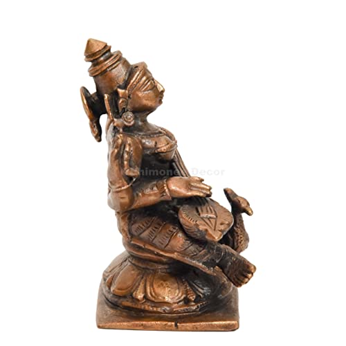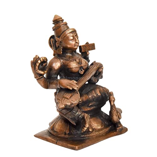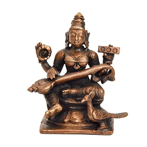 Bhimonee Decor Handmade Copper Saraswati Idol 2.65 inches , Patina Antique Finish , 1 Piece