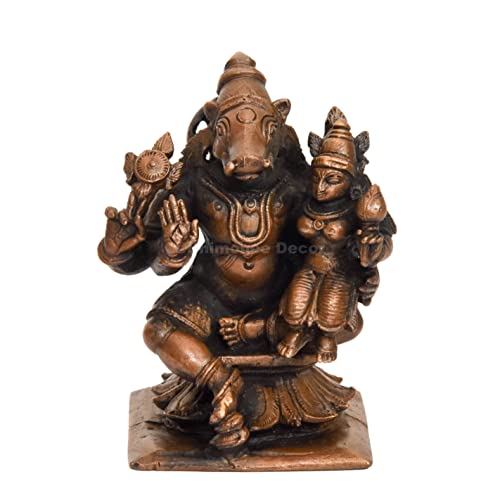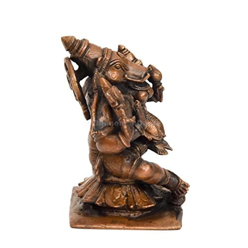 Bhimonee Decor Handmade Copper Varaha Lakshmi 2.65 inches , Patina Antique Finish , 1 Piece