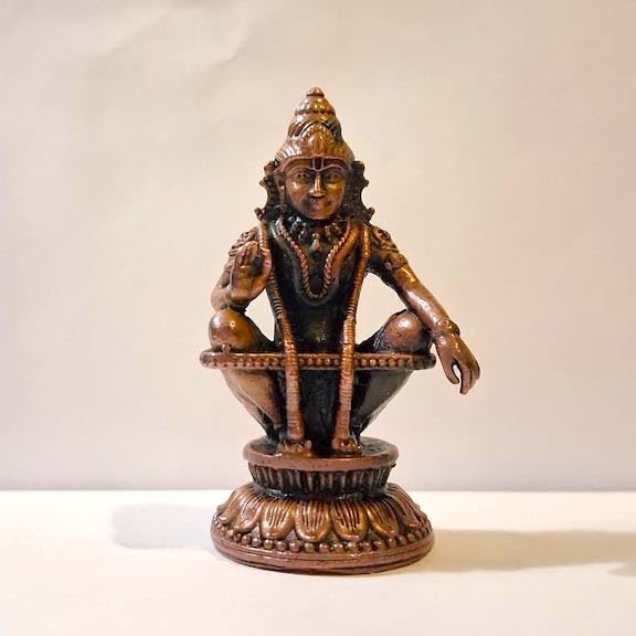 Copper Ayyappa Swamy Idol, 70 Grams, 2.25 inches, Patina Antique Finish