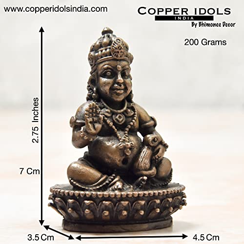 Copper Idols India - By Bhimonee Decor , 2.75 inches, Handmade Copper Indian Kuber Idol, 200 Grams , Patina Antique Finish , Pack of 1 Piece