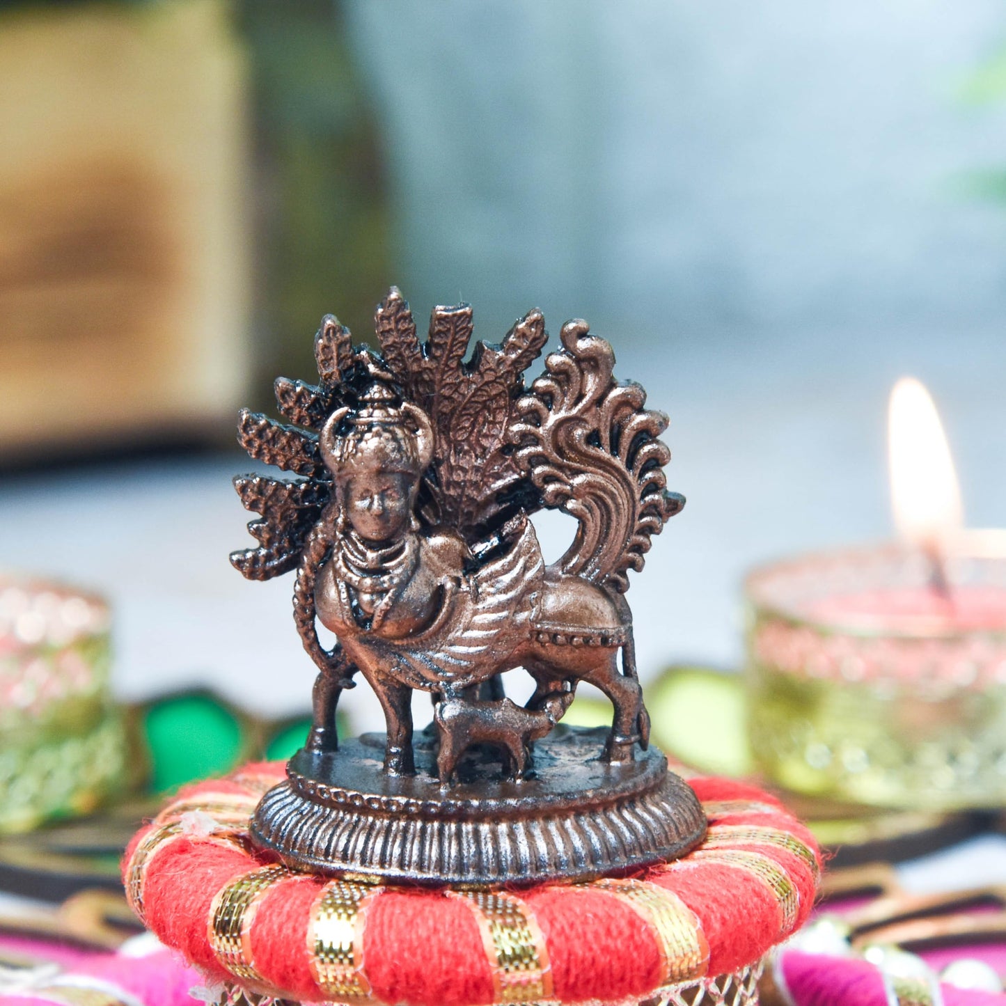 • Handmade Copper Kamadhenu Idol – Symbol of prosperity, wealth & auspiciousness.