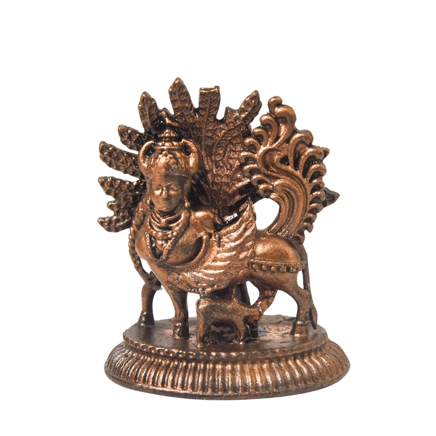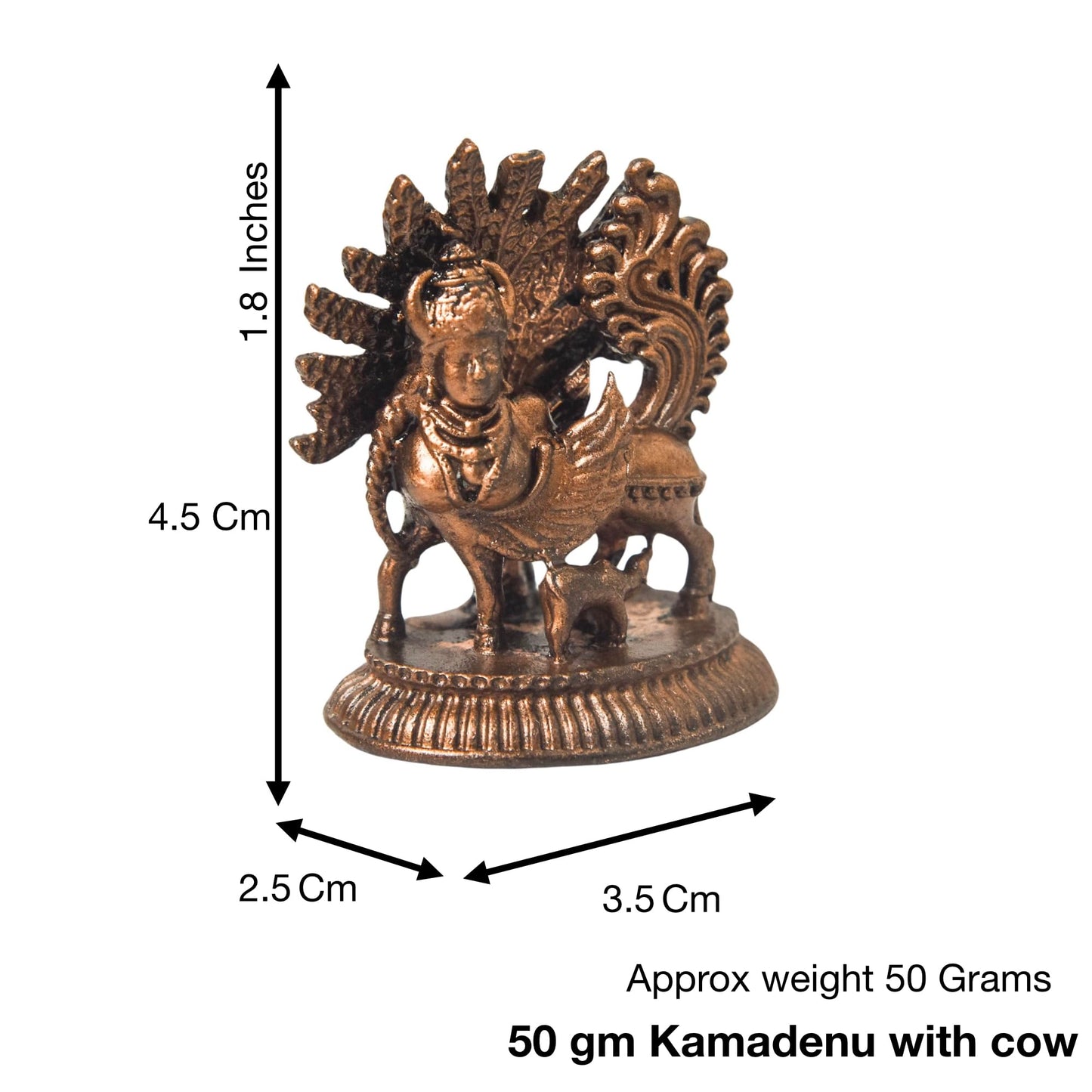 Details: Embrace the divine blessings of Kamadhenu, the sacred cow of Hindu mythology, with this handcrafted copper idol. This 1.8-inch, 50g finely detailed murti features a patina antique finish, symbolizing prosperity, abundance, and positivity. Ideal for home temples, vastu correction, and sacred spaces, this auspicious Kamadhenu statue enhances spiritual energy. A perfect gift for religious occasions, housewarmings, and festivals, bringing harmony and divine grace to your surroundings.