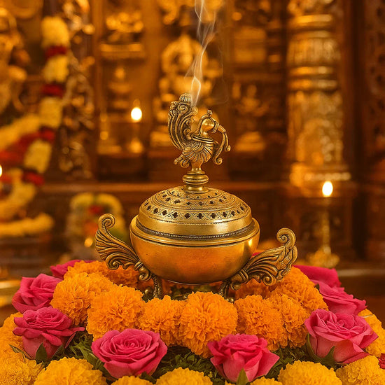 “The brass agarbatti and dhoop holder is compact and keeps the space neat”