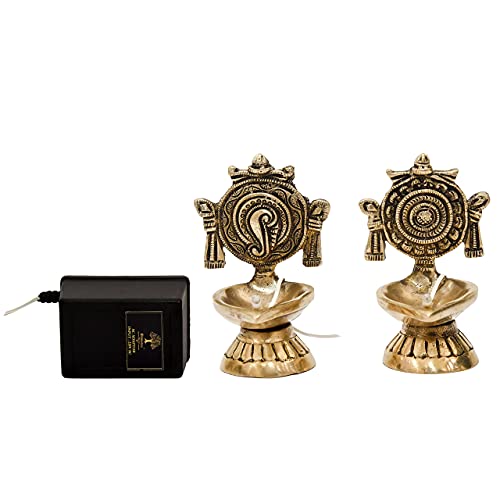 “The Shanku Chakra table diya pair looks elegant and shines brightly during evening pooja”