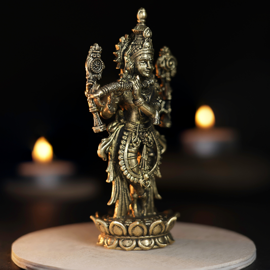 “The Tirupati Balaji stone idol is finely detailed and has a divine presence”