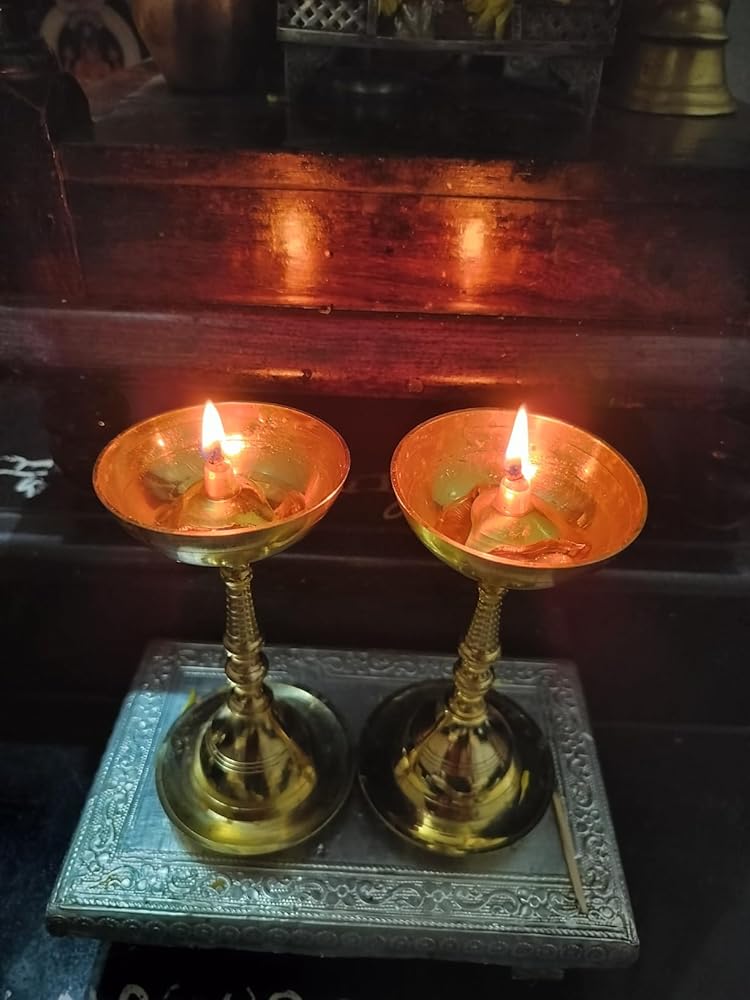 “The 2 step heavy Kerala diya pair has excellent balance and solid brass quality”